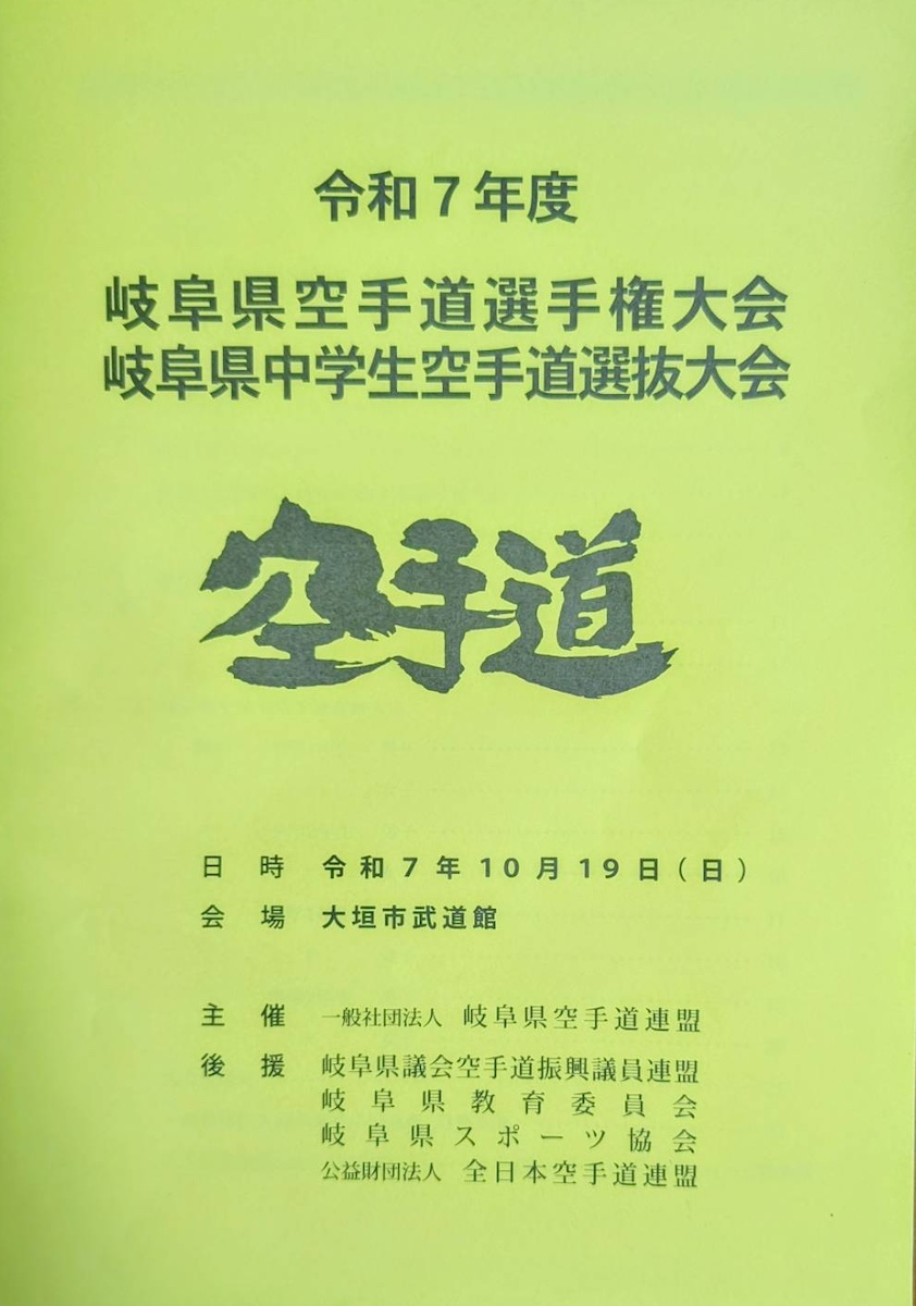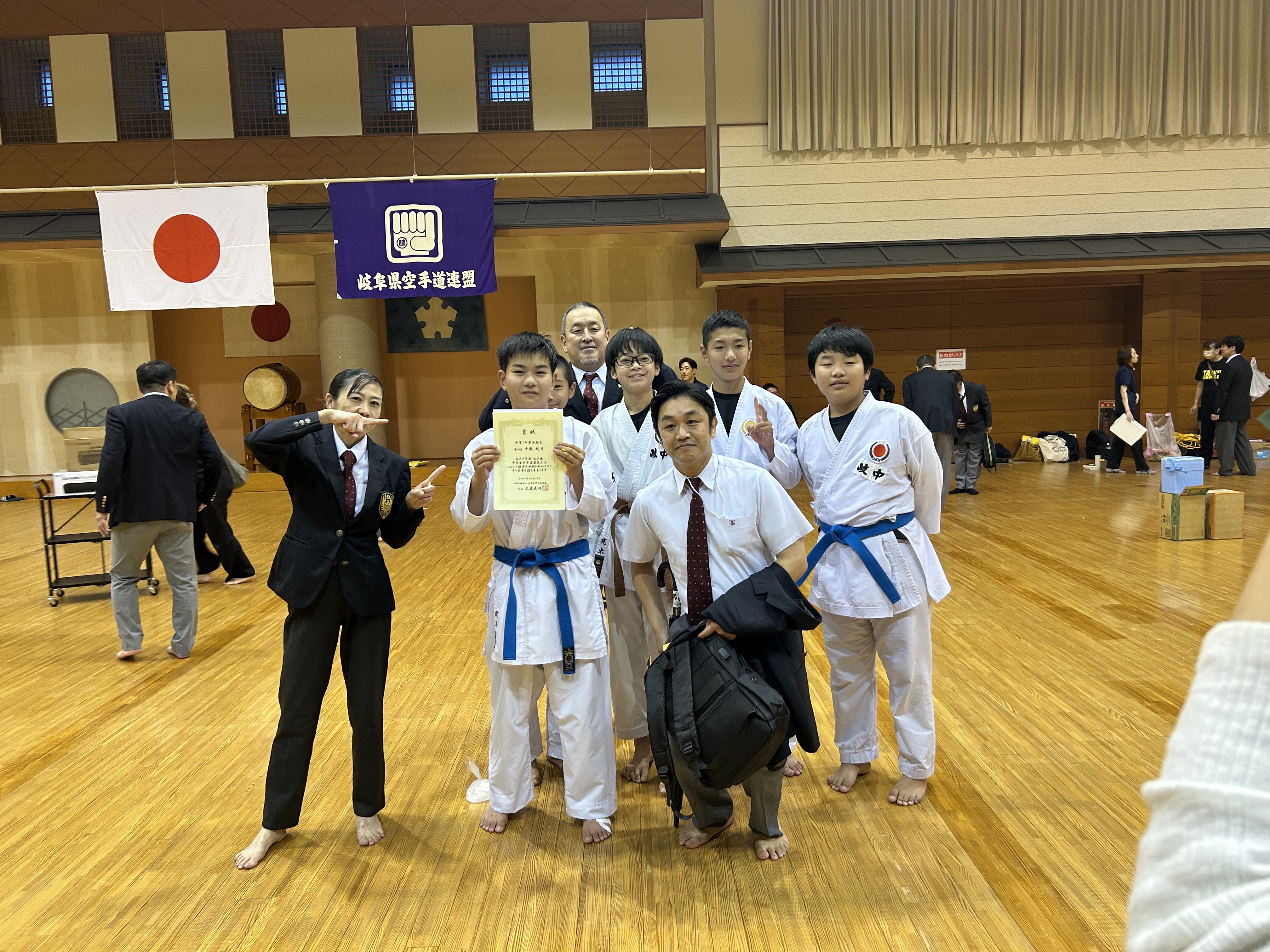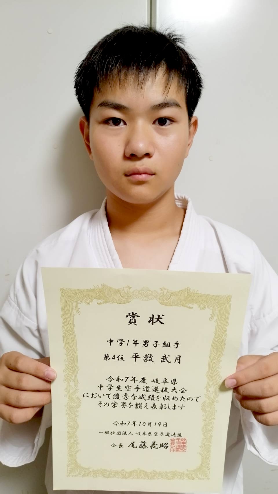 令和7年度岐阜県空手道選手権大会、岐阜県中学生空手道選抜大会が10月19日大垣市武道館において行われました。 選手たちも大変健闘し、平敷武月くんが中1組手の部で選抜されました。 大会に向けて一層頑張ってほしいと思います。